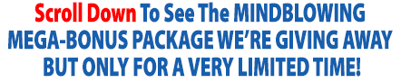 With that in mind, we reserve the right to limit the amount of copies and the duration of this SPECIAL LIMITED TIME OFFER...So please note, this offer WILL disappear when the countdown zeros out and YES, you can come to this page again BUT...This special offer with all the bonuses, MAY NOT BE HERE...