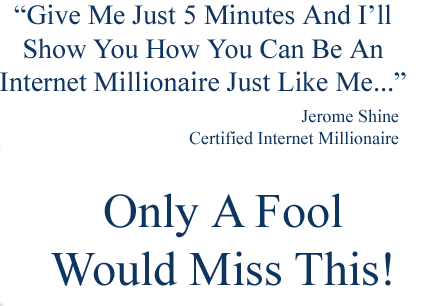 My name is Jerome Shine, I'm an internet millionaire but not that long ago I was wallowing in my own deep dark pit of despair because...